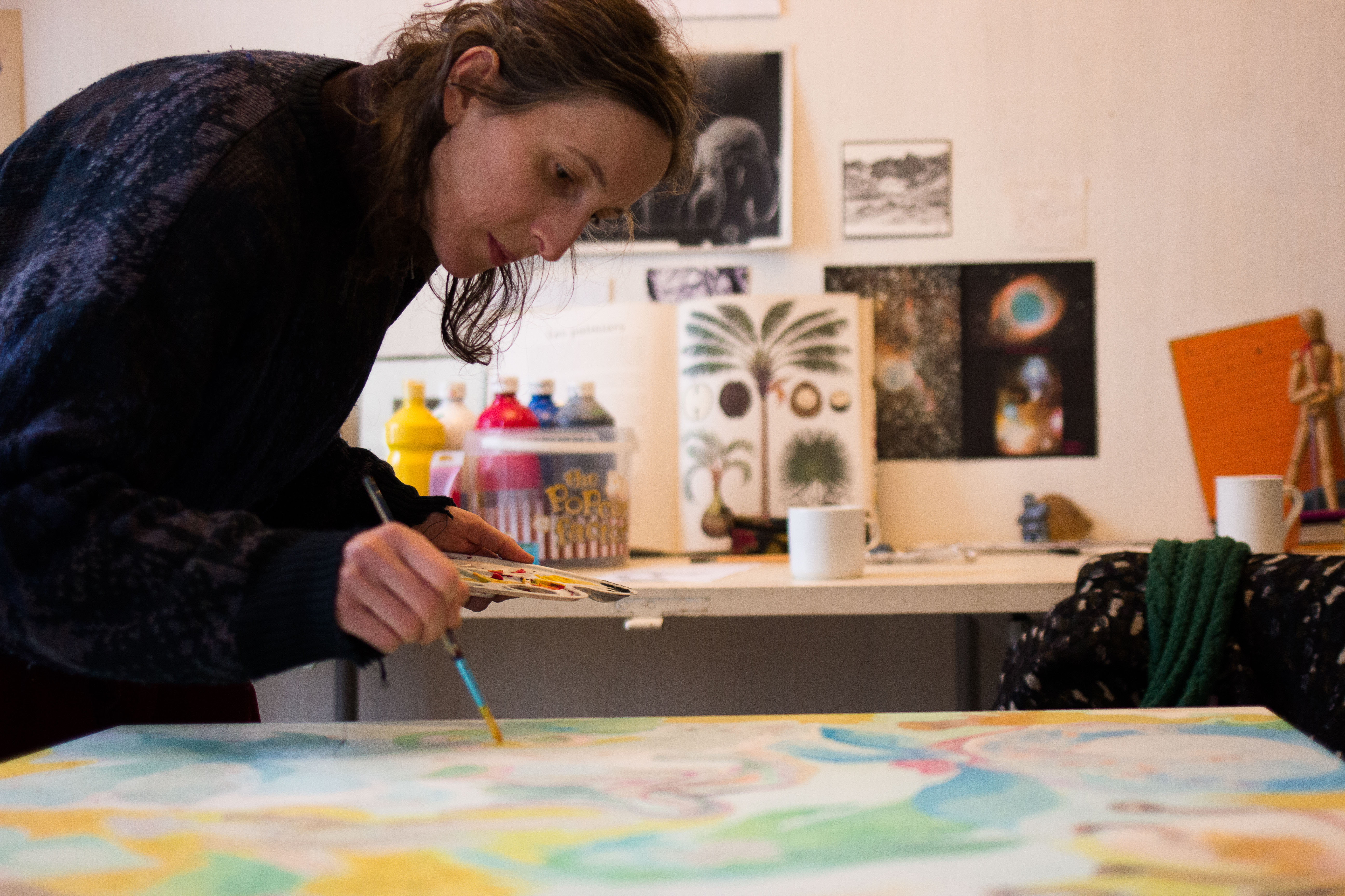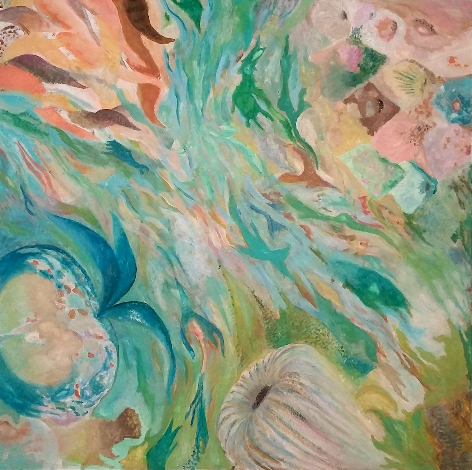 Végétal, vivacité, féérie, Tableau table, Gouache, acrylique, crayons de couleur, 80 cm x 80 cm, Janv 2023, Photos © Bénédicte ANDREANI